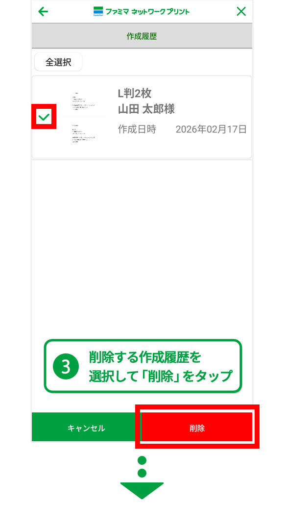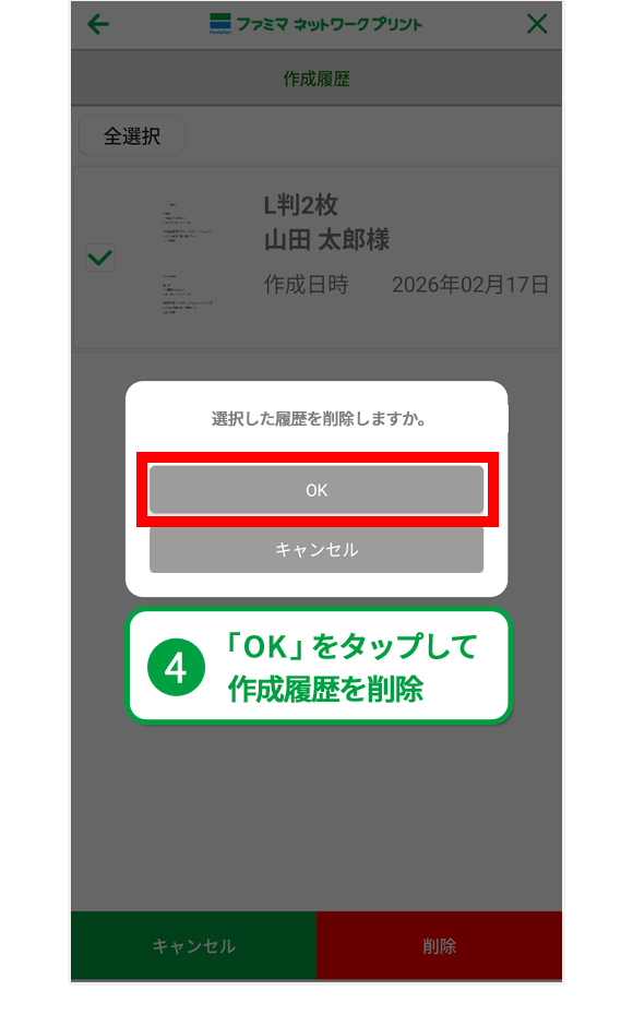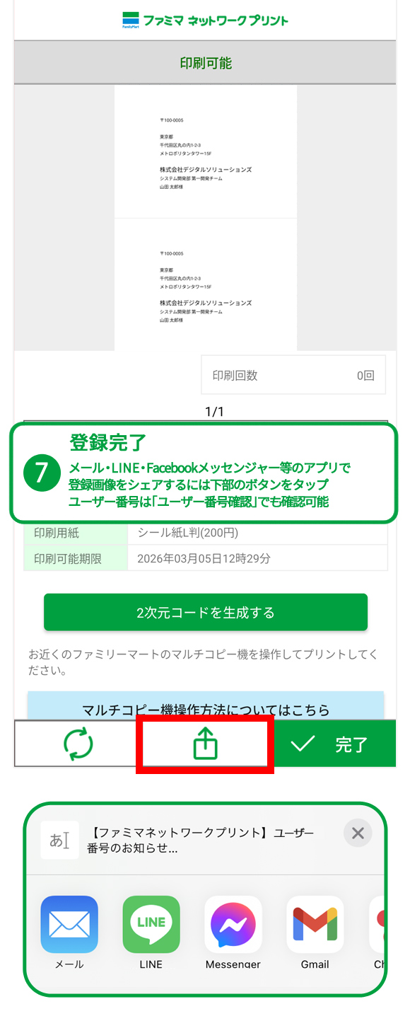 ファミマネットワークプリントアプリを起動し、ユーザー番号をタップし、印刷するユーザー番号をタップ